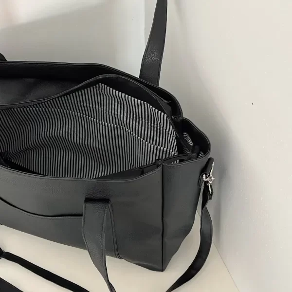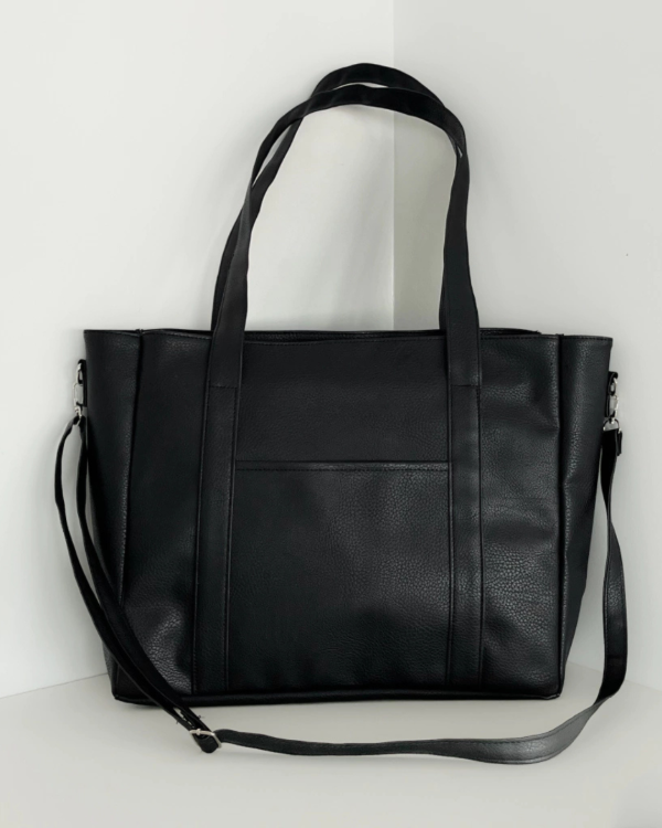 Material: ecocuero PU con forro interno y divisor para notebook. Correa al hombro desmontable y regulable