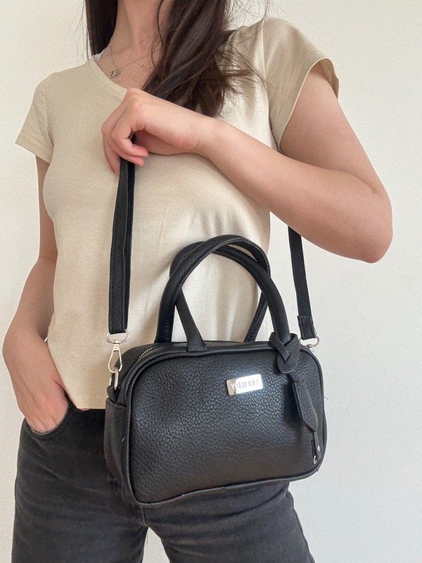 -Contiene: Un bolsillo principal con un bolsillo interno organizador, un bolsillo posterior, una tira de transporte extraible y ajustable.